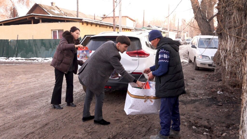 Аталган иш-чара жаңы жылдык корпоративдин ордуна муктаж үй-бүлөлөргө майрамдык маанай тартуулоого багытталды.